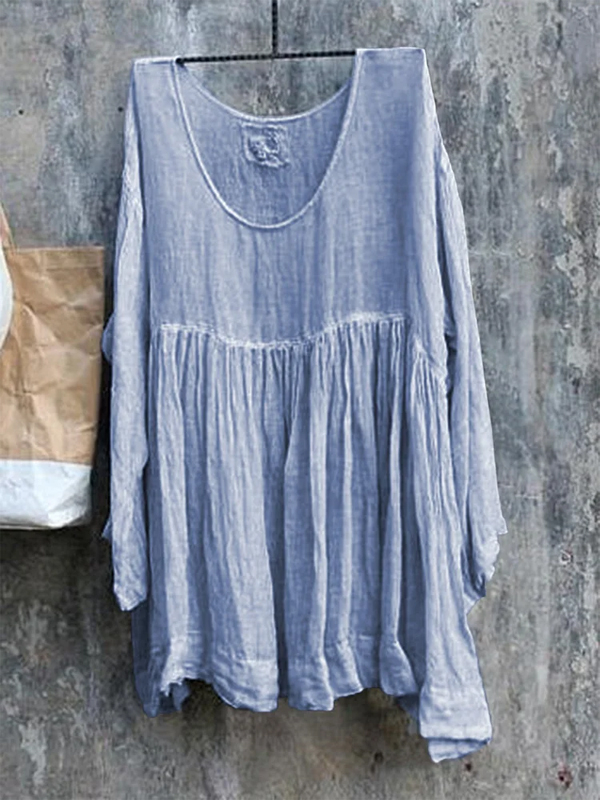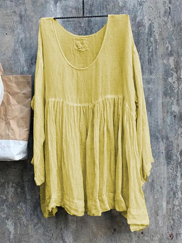 Round Neck Cotton And Linen Solid Color Top