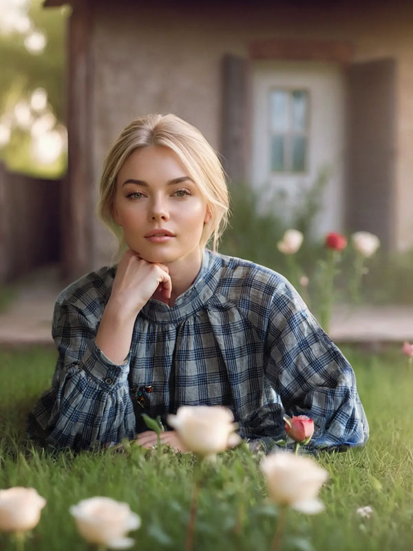 Round Neck Plaid Casual Ladies Pullover Shirt