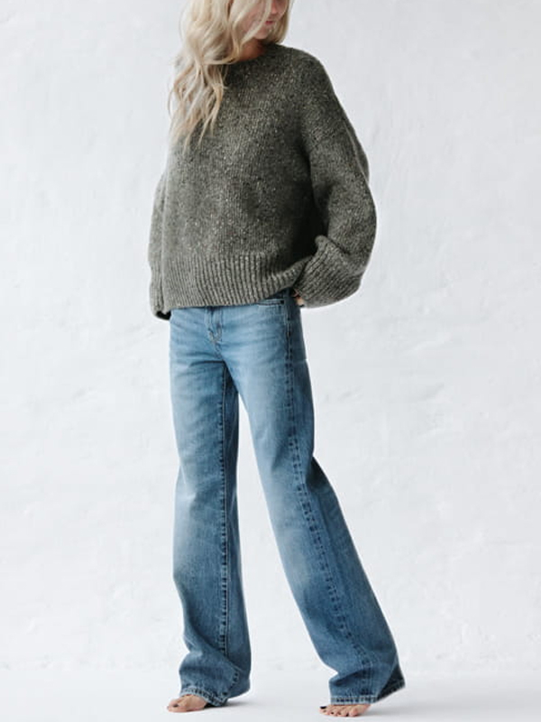 • Solid Color Long Sleeve Pullover Sweater