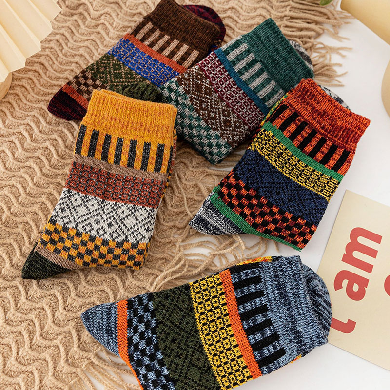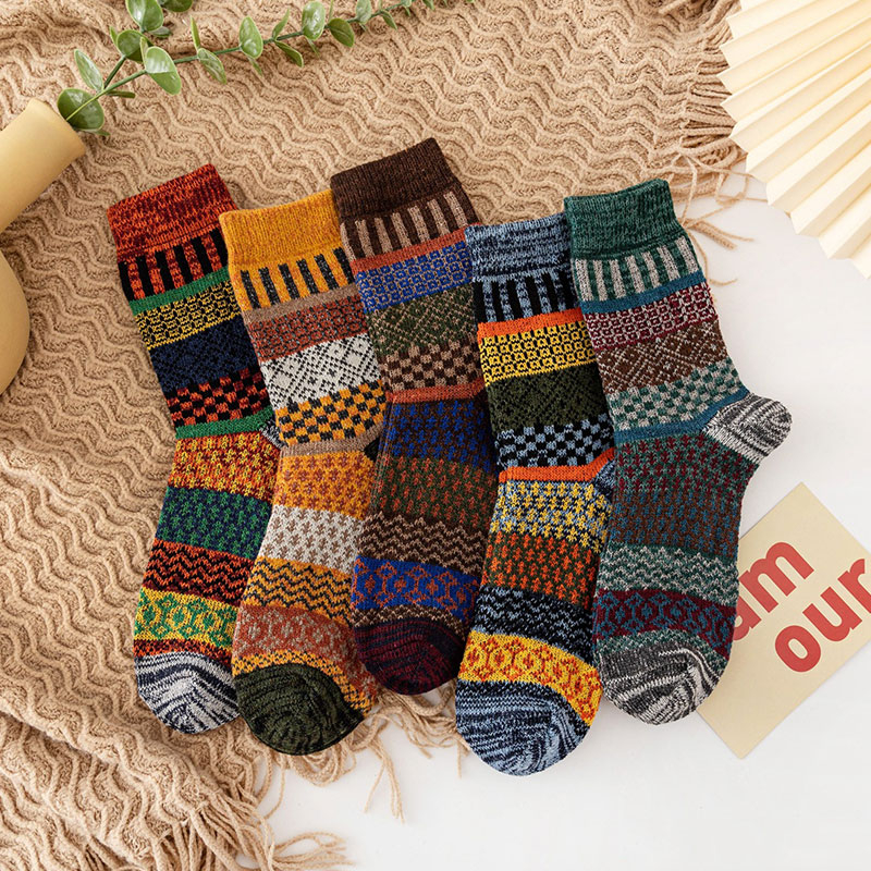 • Ethnic Style Printed High Waisted Five Pairs Women's Socks