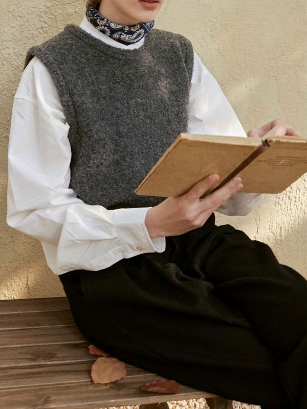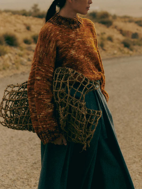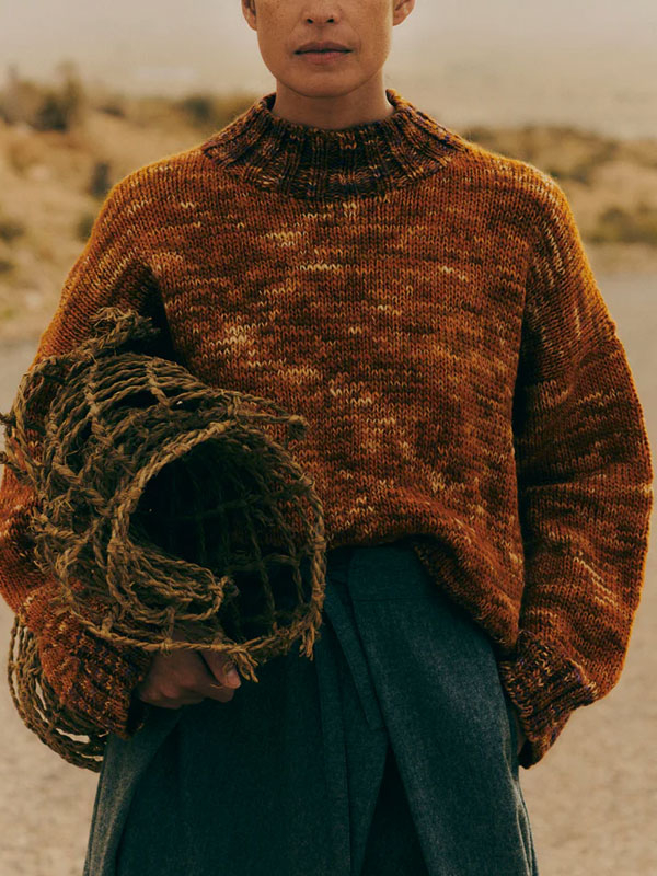 Round Neck Solid Color Long Sleeve Knitted Sweater