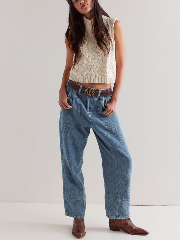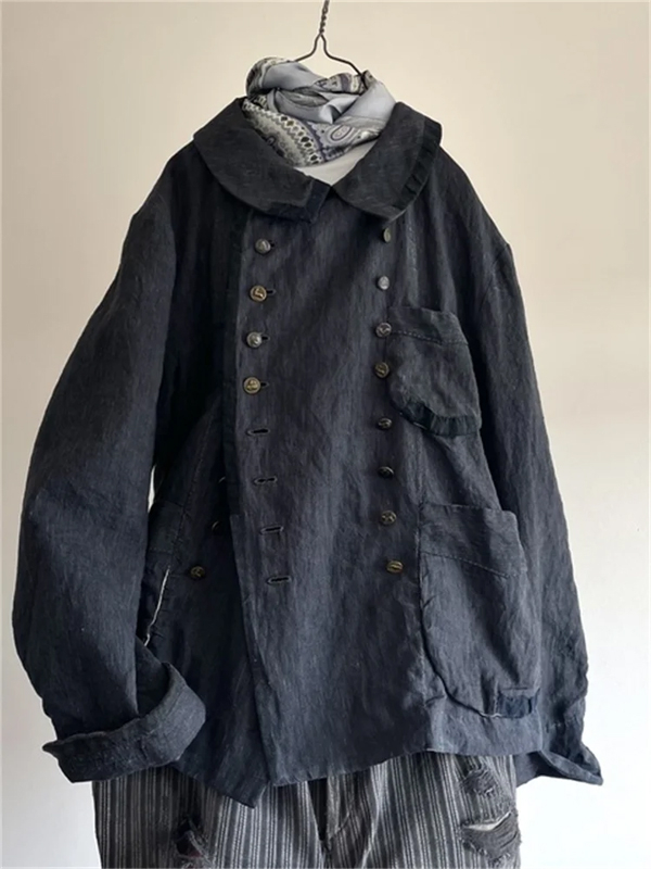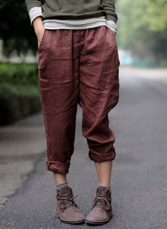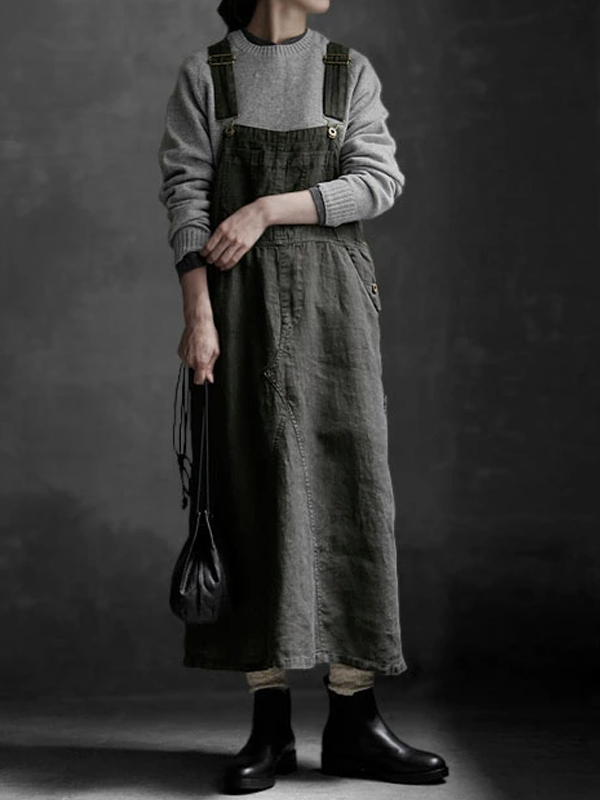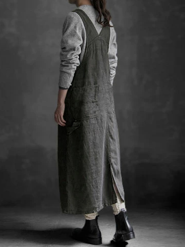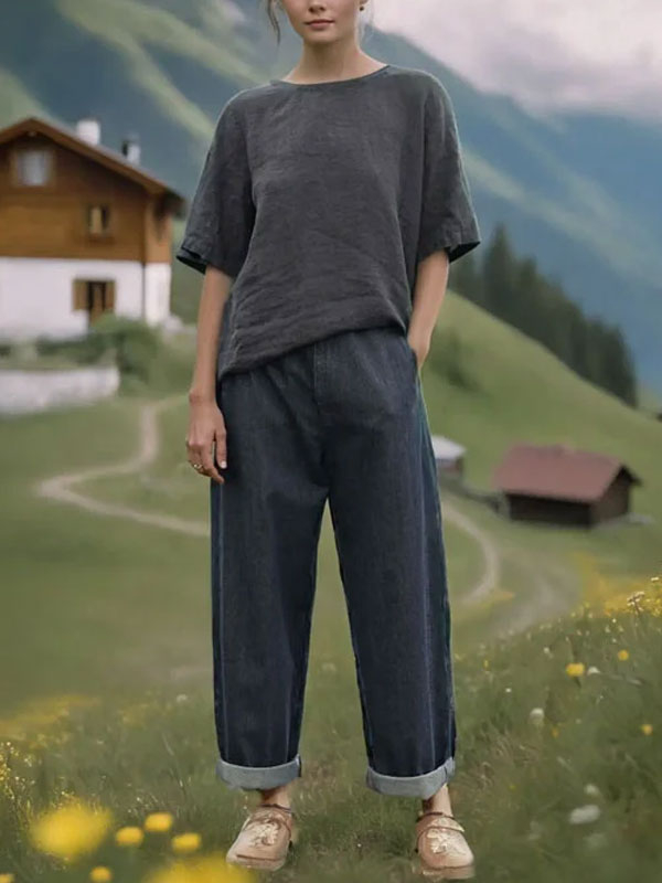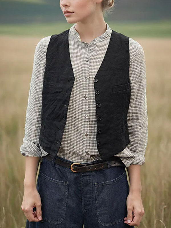Round Neck Sleeveless Solid Color Cotton And Linen Top