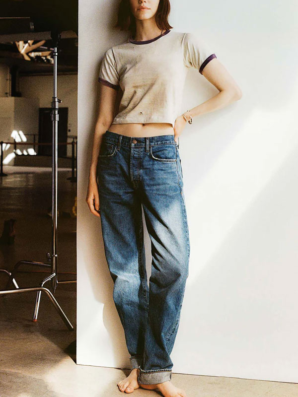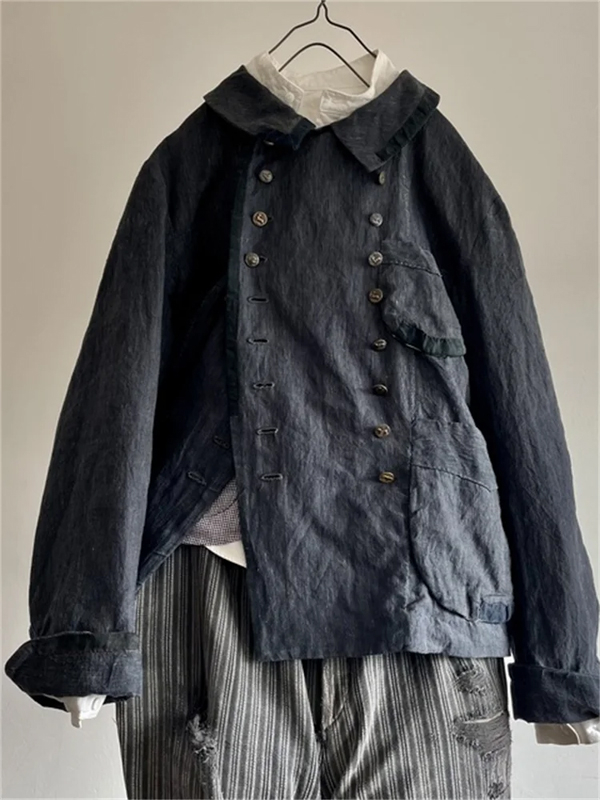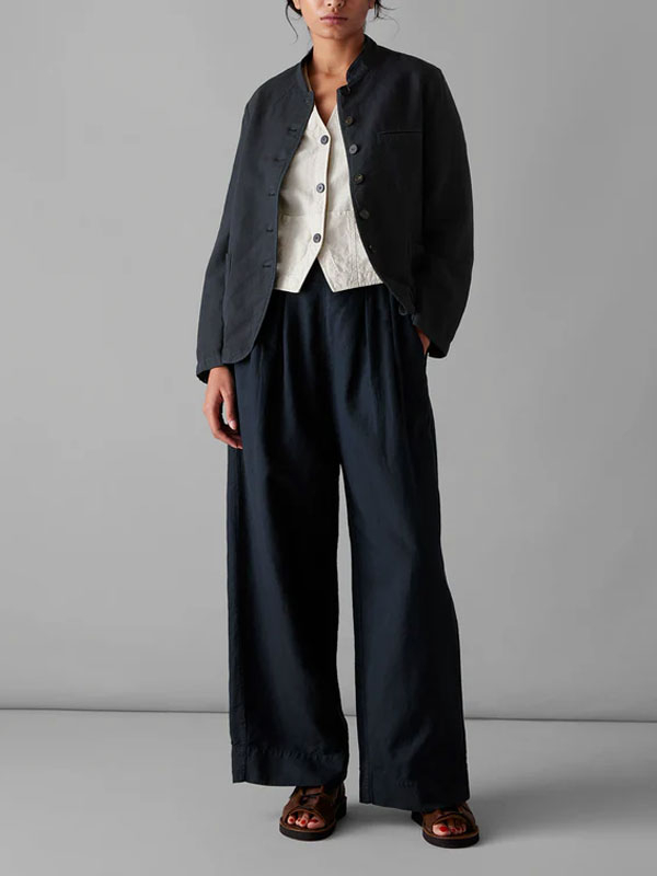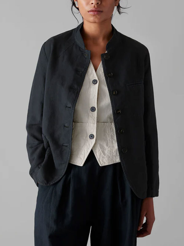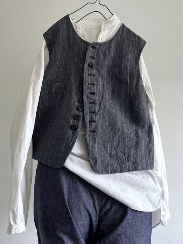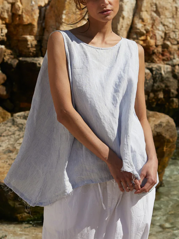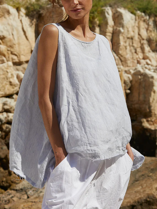 Simple Daily Stripe Cotton Linen Ladies Vest