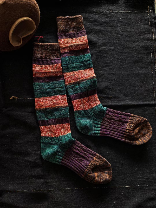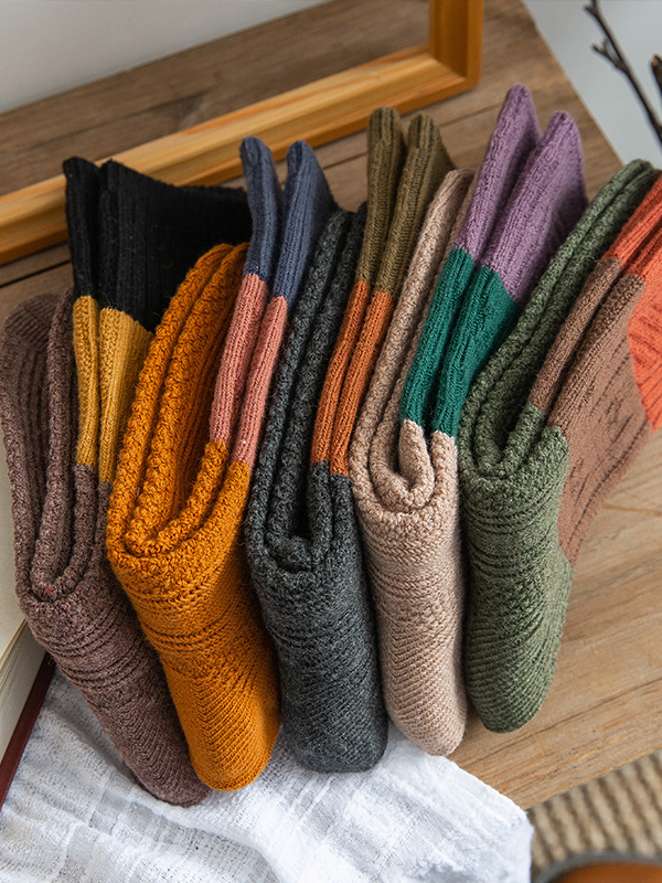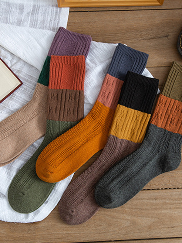 Retro Thick-knit Color-blocked Socks (3 Pairs)