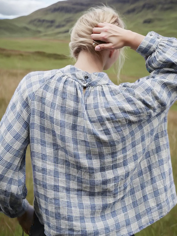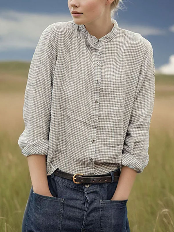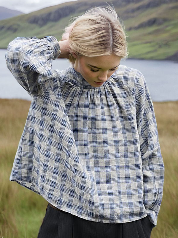 Round Neck Plaid Casual Ladies Pullover Shirt