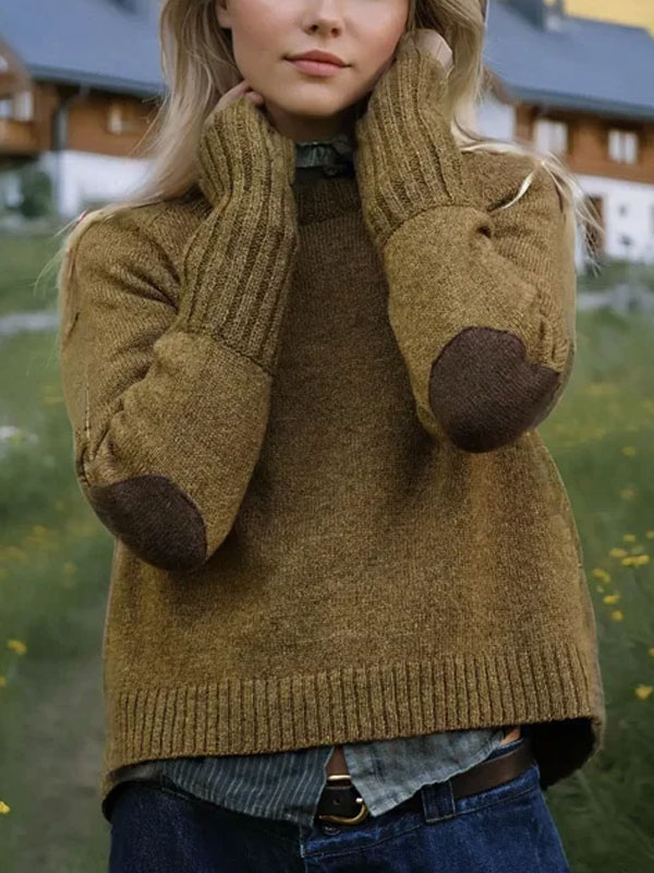 Colorblocked Elbow Patch Threaded Cuffs Women's Sweater