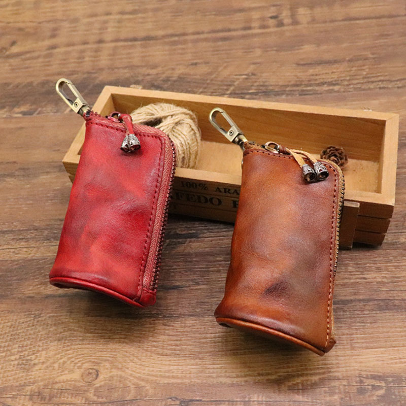 Head Layer Cowhide Vintage Old Cowhide Key Bag