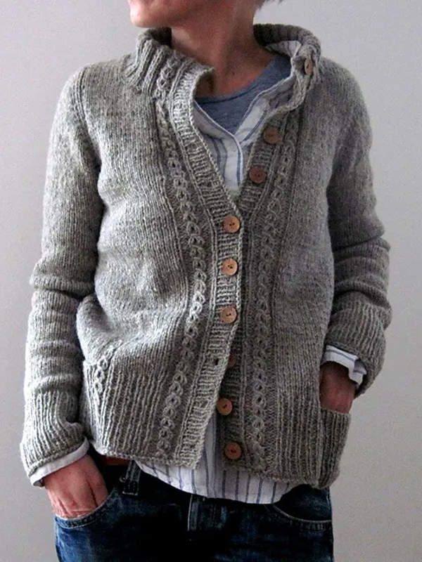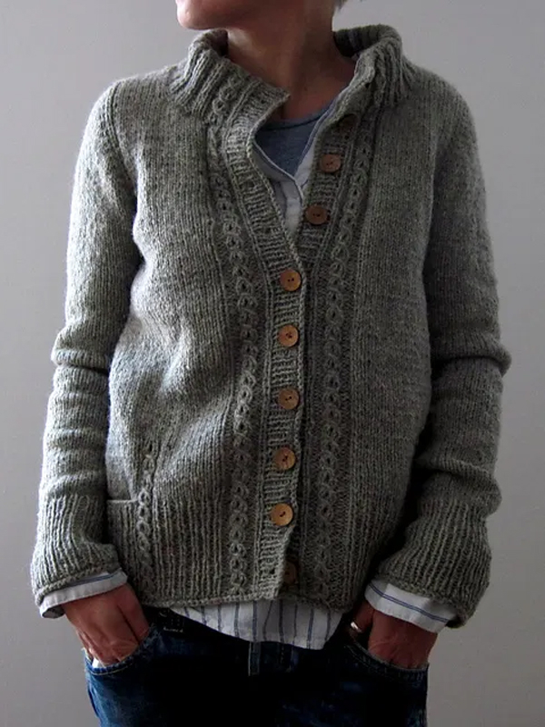 Round Neck Solid Color Long Sleeve Knitted Sweater