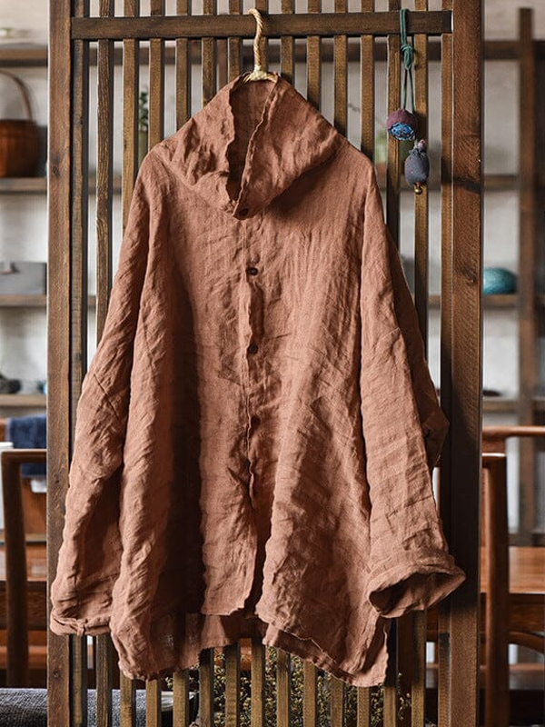 • Pullover Cotton And Linen Solid Color Top